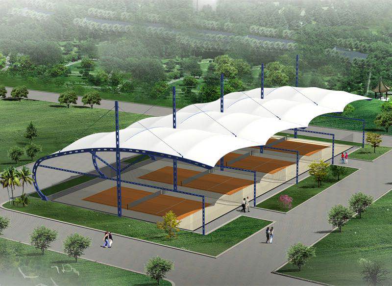 膜结构运用于体育看台能更好的体现膜结构的这一特性。体育场膜结构看台与传统看台相比,看台造型大气,线条简洁明快,能遮阳避雨,集实用与优雅为一体,具有造型优美,空间跨度大,自重轻,使用年限时间长等特点。